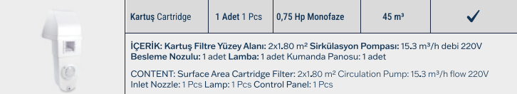 Max 45m3 havuzlar İçin dir